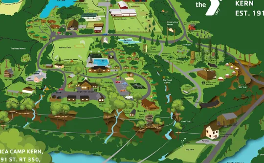 The Camp Kern map is a great tool to help your camper feel more confident before they even arrive. Spend a few minutes reviewing it together to see all of the adventures you won't want to miss.
